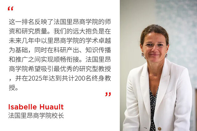 法国里昂商学院在研究教授高水平科研产出的影响力及其与其他大学和国际学院开展国际合作的能力方面的评分尤为突出。