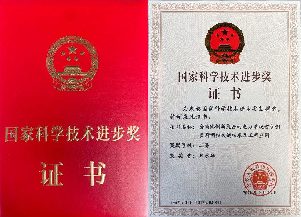11月3日,国家科学技术奖励大会在北京隆重举行,习近平、李克强、王沪宁、韩正等党和国家领导人出席并向获奖代表颁奖。澳门大学校长宋永华作为第一完成人的项目“含高比例新能源的电力系统需求侧负荷调控关键技术及工程应用”获2020年度国家科学技术进步奖二等奖。