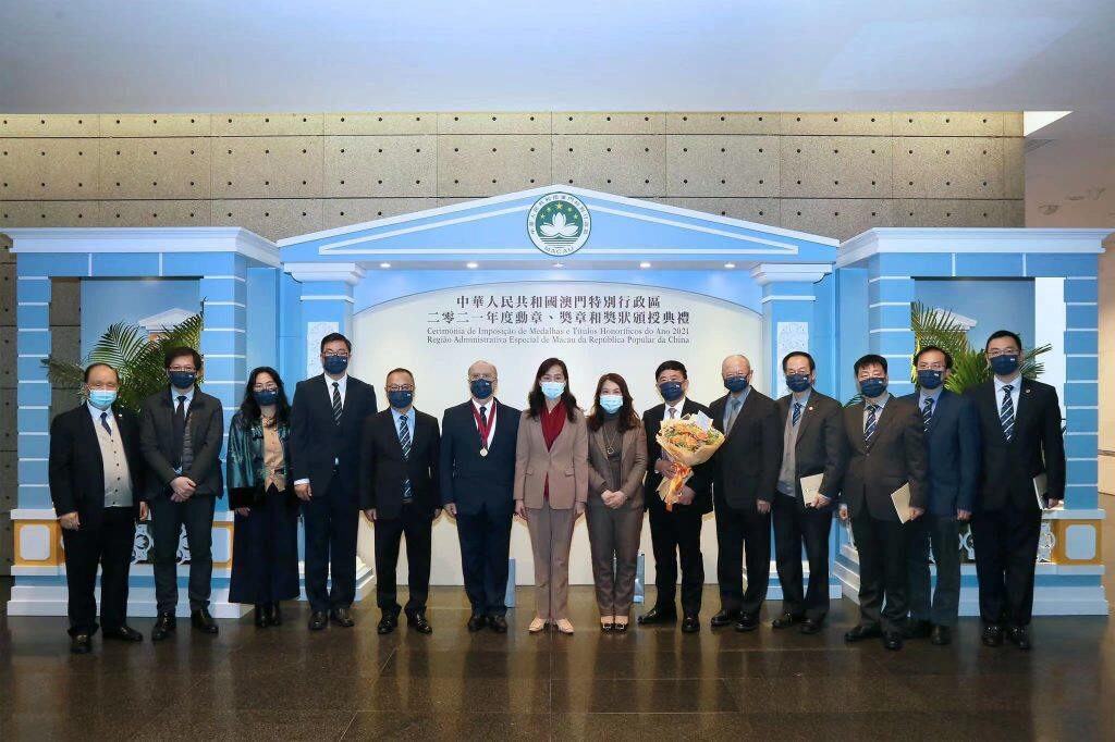 澳门特别行政区政府2月18日举行2021年度勋章、奖章和奖状颁授典礼,由行政长官贺一诚主持。澳门大学中药质量研究国家重点实验室和该校副校长马许愿分别获颁授专业功绩勋章和教育功绩勋章,以表扬其在中医药研究和教育方面的杰出贡献。