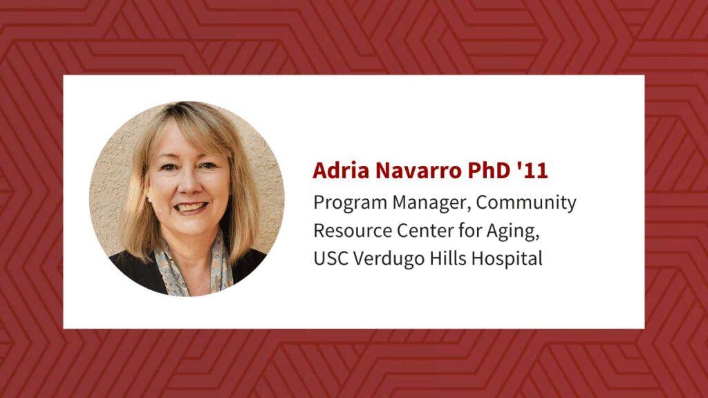 Navarro目前担任的是南加州大学USC-VHH老龄化社区资源中心的项目经理,她以帮助老年人及其家属应对老龄化挑战并利用一系列可用资源来提高他们的生活质量为使命。老龄化社区资源中心提供了一个强大的资源网络、社区服务和支持系统,专用于应对复杂的老龄化问题,致力帮助老年人改善生活质量。