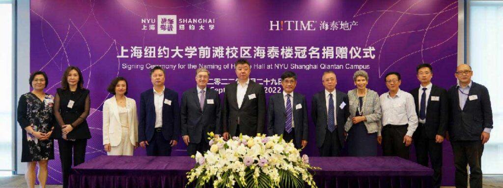 9月29日下午,上海纽约大学举行了前滩校区海泰楼冠名捐赠签约仪式。值建校十周年之际,上海海泰房地产(集团)有限公司向上海纽约大学慷慨捐资,主要用于支持奖助学金、师资招聘及学生国际交流等学校建设发展最需要的方面。为感谢海泰地产善举,学校决定将前滩校区北教学楼冠名为“海泰楼”。企业创始人兼董事长丁劲松及集团高管,上海纽约大学校长童世骏、常务副校长雷蒙、教务长衛周安、副校长丁树哲等出席冠名捐赠仪式。活动由上海纽约大学基金发展部主任、教育发展基金会秘书长孙霜韵主持。