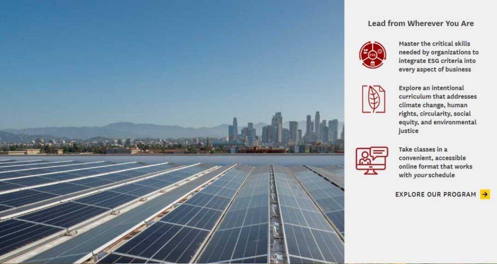 USC现在提供了1,200门以可持续为重点或包含可持续内容的课程;今年,将有16名学生参与到致力于可持续发展的独特校长实习项目中。USC也完成多个太阳能装置项目,现在校园中有25%的电力来自太阳能发电。USC还在校园内取消了一次性塑料饮料瓶,迄今已有超过150万个塑料瓶免于被填埋。
