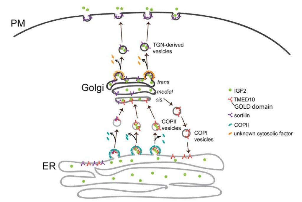 IGF2在细胞增殖、迁移、分化和存活等过程中起着关键作用。它的功能失调会导致多种生长障碍,包括银罗素综合症 (Silver–Russell syndrome) 和贝克威思–威德曼症候群 (Beckwith–Wiedemann syndrome)。虽然IGF2的表达和其激活的下游讯号传导途径已被广泛研究,但新合成的IGF2蛋白如何高效地分泌以发挥其功能仍然未明。