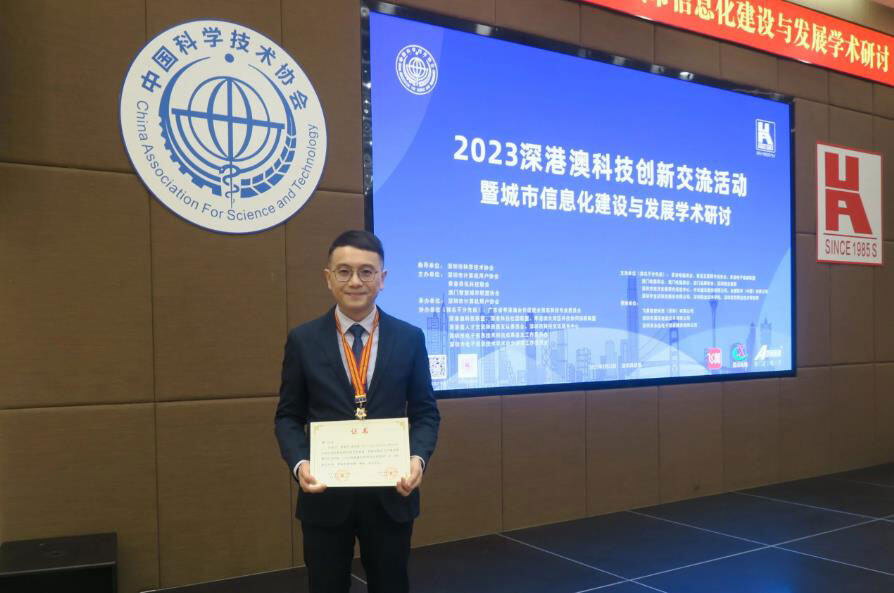 此外,深圳市科协党组成员孙楠亦还向项目第一完成人林智声授予深圳市计算机科技贡献二级奖章。林智声表示,该项目是澳大在科研和创新的重大成果。成功研发和应用该项目,将有助推动澳门乃至粤港澳大湾区的科技发展和经济转型升级。
