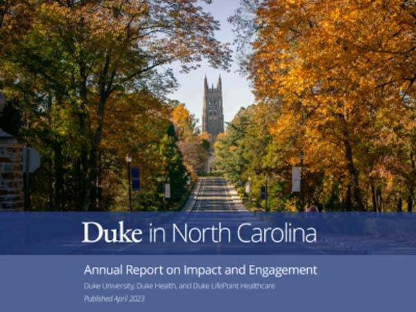 通过教育、合作研究、目的明确的伙伴关系、服务以及满足社区的医疗需求,杜克大学致力于促进被它称为家的北卡州的繁荣。第二年的《杜克大学在北卡罗来纳州的影响力和参与度年度报告》通过着重强调杜克大学、杜克健康和杜克 LifePoint 医疗在北卡罗来纳州的价值、存在和影响,凸显了杜克大学做出的贡献。