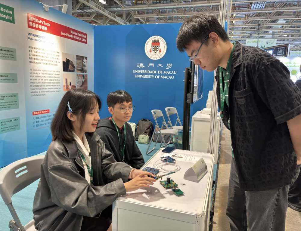 是次展出的澳大科研成果包括:一、澳大模拟与混合信号超大规模集成电路国家重点实验室路延副教授研发的“电子设备间双向充电的芯片设计”,该设计采用单颗可重构、高功率密度、小型化的双向能量传输芯片,以实现设备间的高效率快充,方便用户在紧急或者没有主电源的情况下,实现电子设备之间的能量共享;二、科技学院黎永杰副教授研发的“多旋翼无人机在大气垂直测量中的应用”,该应用通过使用多旋翼无人机搭载监测器,在粤港澳大湾区多个地点上空测量污染物,探究污染物的垂直分布和环境影响,以理解污染物的来源、传输和扩散;三、澳大书院创业团队研发的“澳门BioPeTech环保麦芽猫砂”,使用啤酒行业产生的麦芽渣作为植物纤维基底,研发出天然环保、健康品质的猫砂产品。