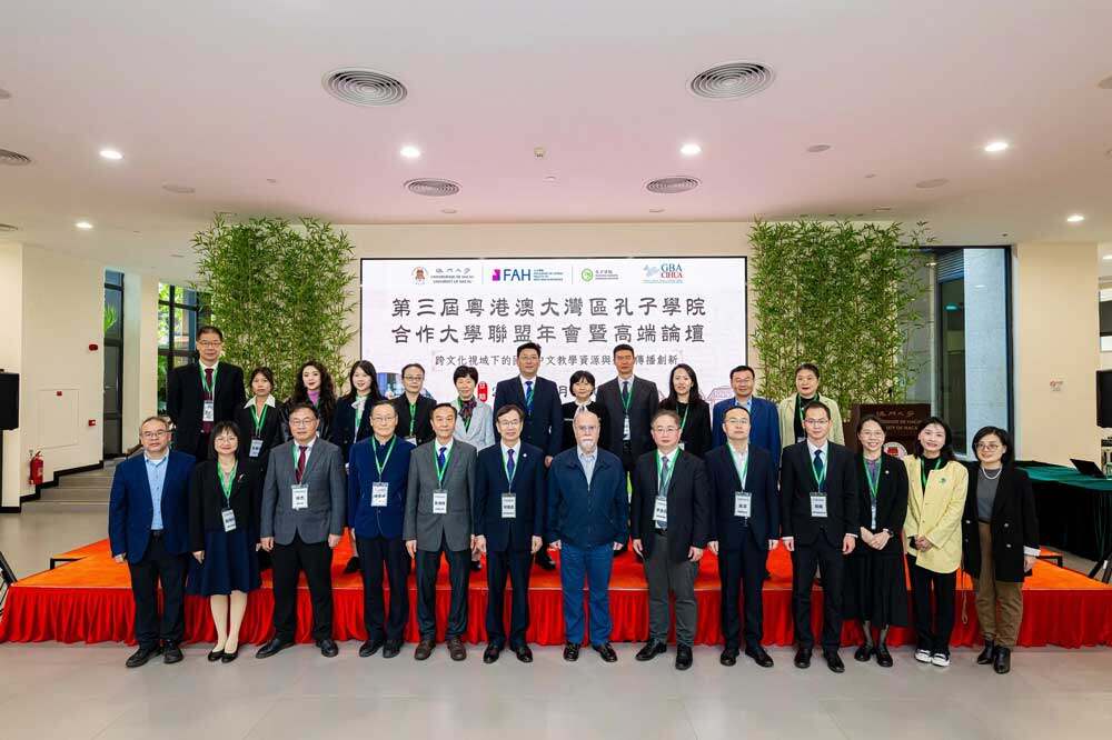为庆祝澳门特别行政区成立25周年和孔子学院成立20周年,澳门大学孔子学院举办2024年第三届粤港澳大湾区孔子学院合作大学联盟年会暨高端论坛,澳门大学、香港理工大学、中山大学、华南理工大学、广东外语外贸大学、华南师范大学、广州大学、岭南师范学院、深圳大学等多所高校代表齐聚一堂,推动国际中文教育事业的发展。