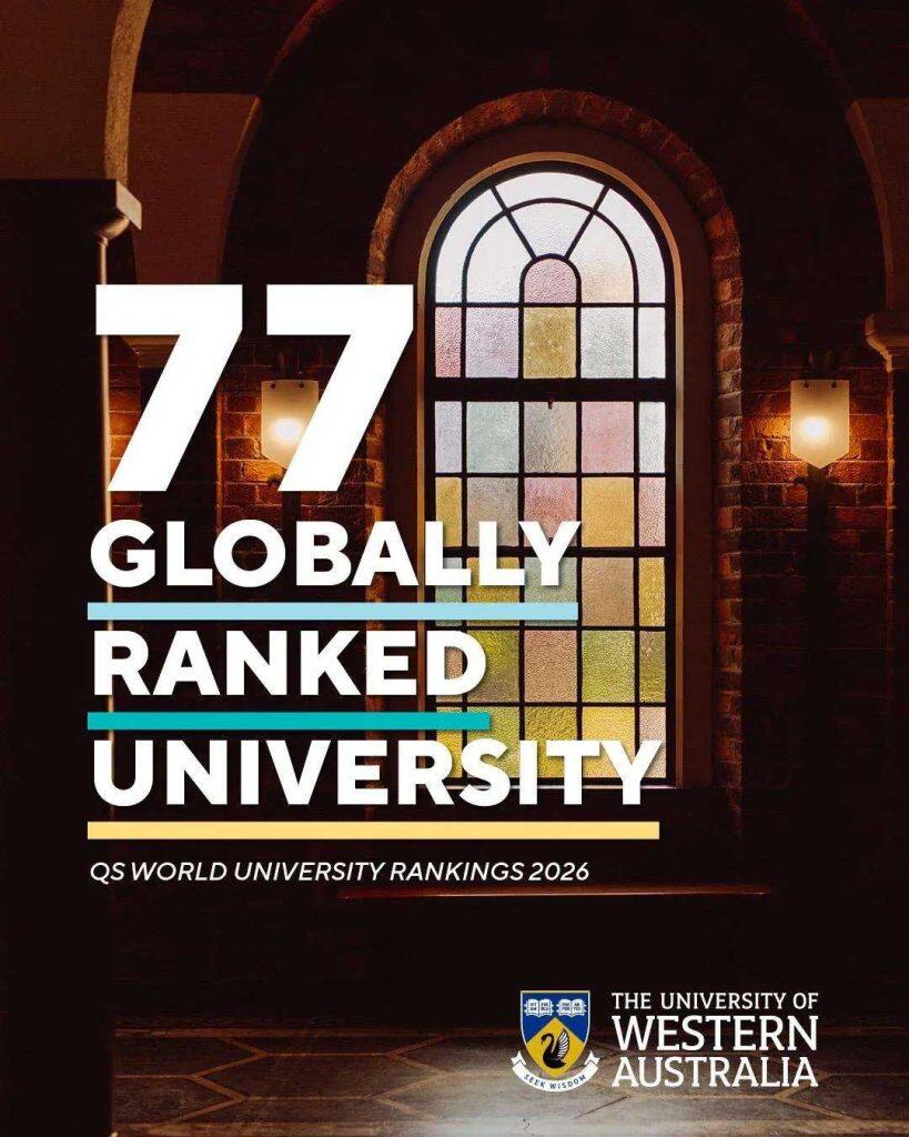 在最新颁布的2025年QS世界大学排名中,UWA名列全球第77位。UWA是澳大利亚顶尖科研机构,为学生提供现代化的教学和研究设施、学习空间及实验室。其提供的学科在多个领域位列世界前百,其中采矿工程、运动科学、地球与海洋科学、石油工程、心理学等跻身世界前50。学校拥有两位诺贝尔医学奖得主分别是Barry Marshall教授和Robin Warren教授以及多名在各个领域的佼佼者。