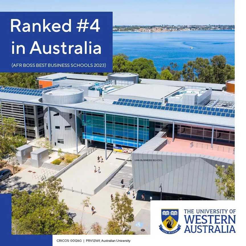 西澳大学商学院(The University of Western Australia Business School)在2023年《澳大利亚金融评论报》(Australian Financial Review-AFR)AFR BOSS最佳商学院排名中位列澳大利亚前五名