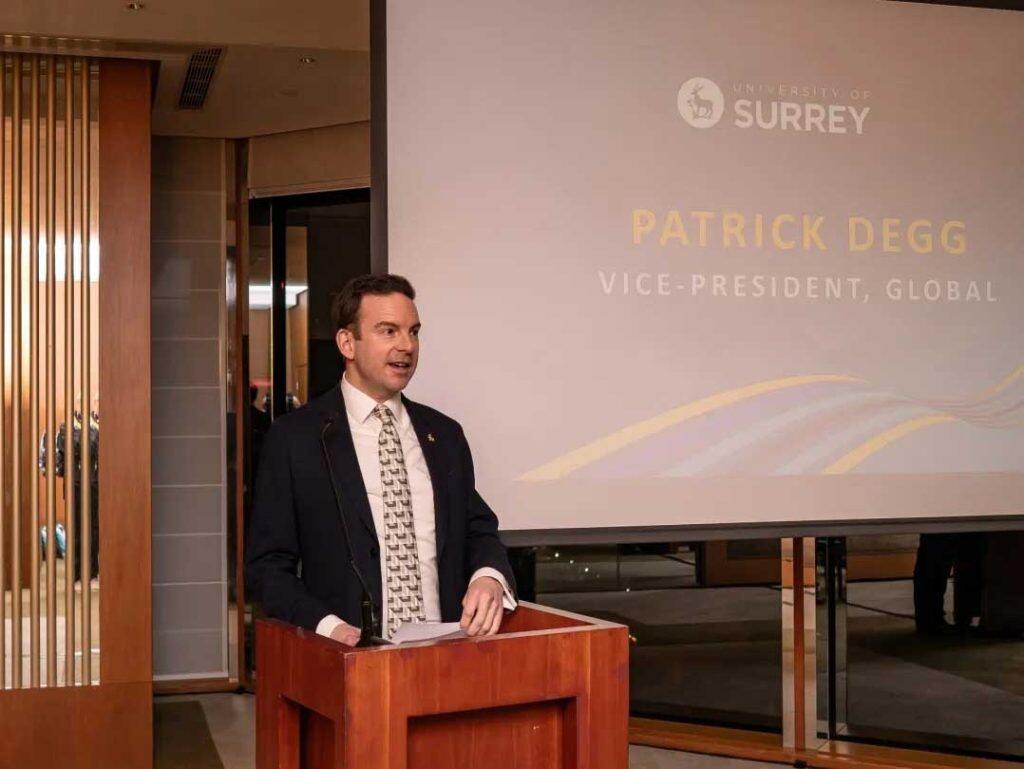 活动伊始,校友来宾在温馨的氛围中签到寒暄,随后,萨里大学全球事务副校长Patrick Degg发表欢迎致辞,为活动正式揭幕。接着,萨里大学校长逯高清(Max Lu)教授为大家详细介绍了母校近期的飞速发展,从科研创新到教学质量提升,全方位展示了学校日益攀升的成就。他的发言让在场校友倍感自豪,也激发了大家对母校未来发展的热切期待。