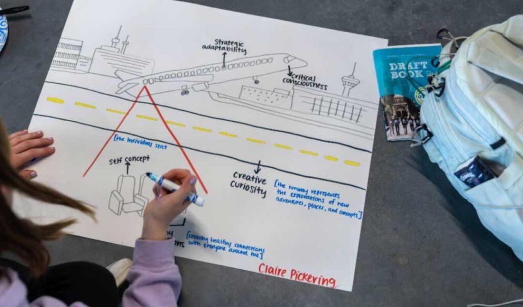 理海大学负责迎新的学生大使们在春季学期期间,首次以新的理念制作bLUeprint。来自加州的Claire Pickering在她的笔记本上绘制了一架飞机。她说:“这代表着我来理海求学的旅程,这副蓝图能够提醒我要全面看待我在理海的经历,并鼓励我按照自己的想法行动起来。”