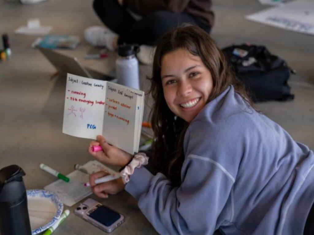 26岁的Luke Kaiser则在他的笔记本上绘制了一年级宿舍Drinker Hall的图纸,他说:“战略性适应原则曾鼓励我反思自己真正想要什么,并做出了从管理专业转到新闻专业的重要决定。建立bLUeprint能够帮助每位学生根据自身经历确定个人发展目标,这正是理海大学为学生提供的众多机会之一,让大家都能把大学生活过成自己想要的样子。