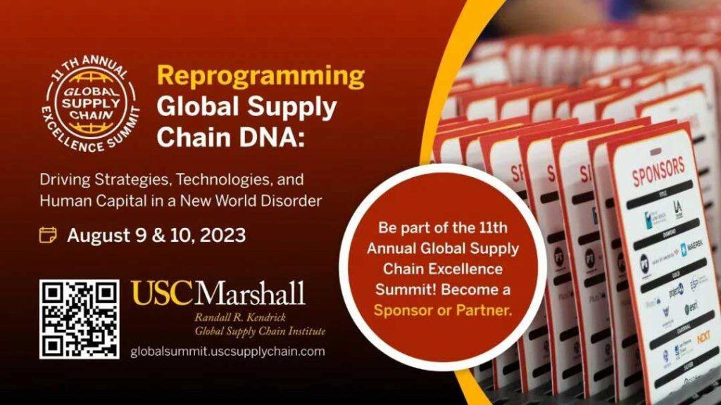 2023年8月9日至10日,第11届年度全球供应链卓越峰会(Annual Global Supply Chain Excellence Summit) 将由USC Marshall Randall R. Kendrick全球供应链研究所在南加州大学校园举办。