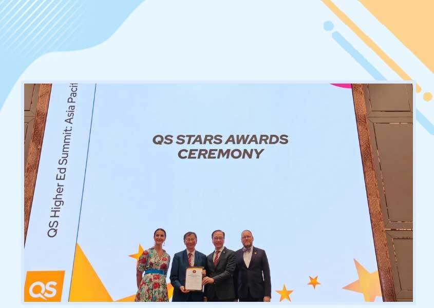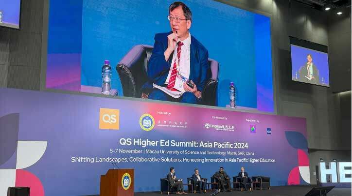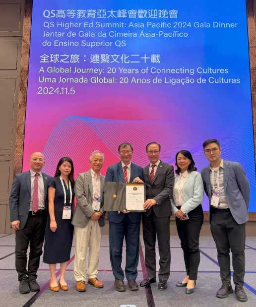 李教授与副校长(研究与发展)陈智轩教授昨日出席于澳门举办的「 QS高等教育亚太峰会」欢迎晚会时,正式领受「5星院校」证书。李教授在出席今日「QS高等教育亚太峰会」论坛对话环节时,谈及微证书(micro-credentials) 的发展,他表示学生拥有「微掌握」(micro-mastery )的技巧能增强就业能力,若将相关技巧整合进教育体系,长远来看有助终身学习,提升个人与职业成长,建立可持续及包容的未来。